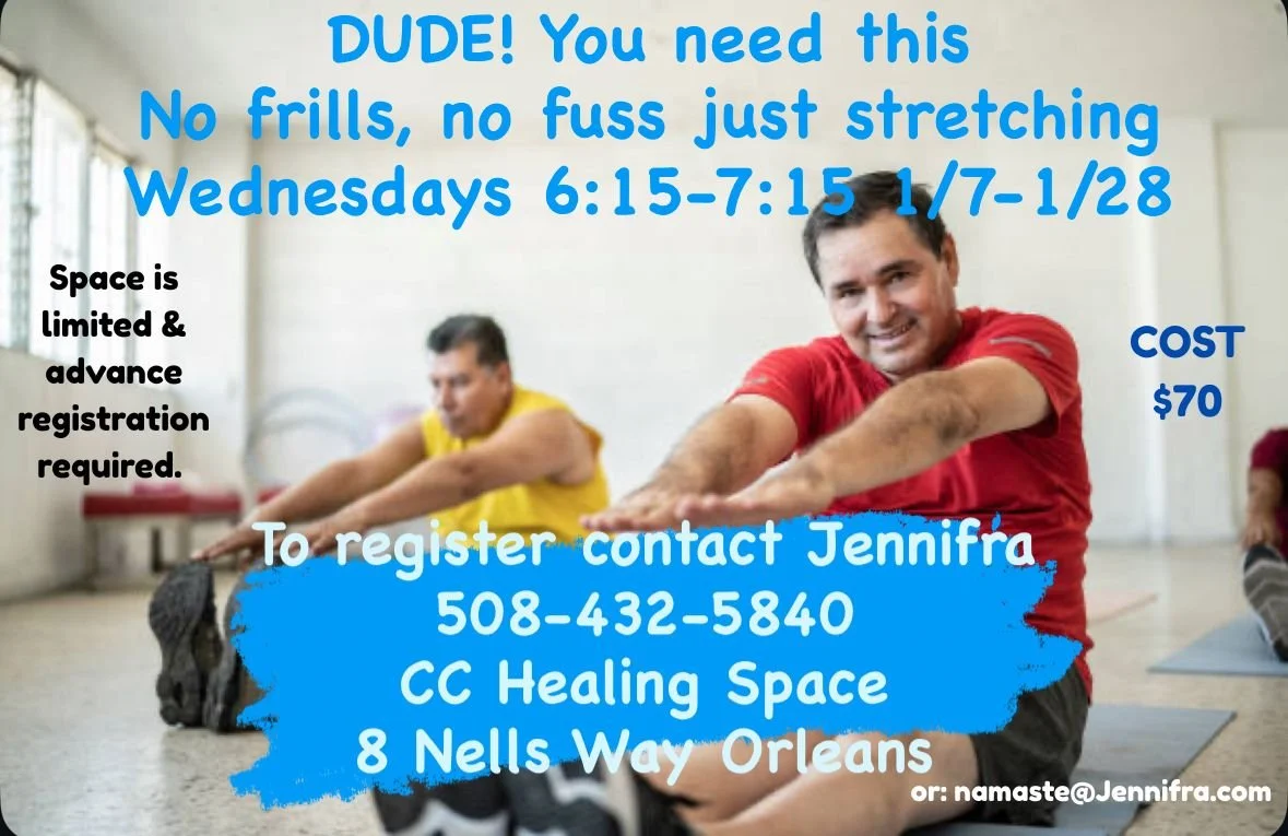 Monday evenings 6:15-7:15 ish ( July 7th, July 21, July 28th, Aug 4th, Aug 11 and Aug 18th) The Healing Space, Orleans, MA